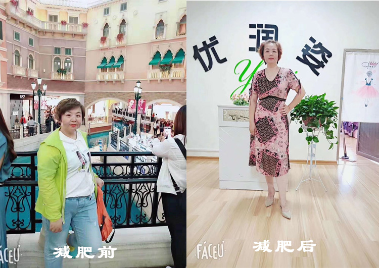 减肥历史:我今年已经35了,体重最高的时候,甚至达到162斤,因为肥胖各种各样的病痛都找上了我,脂肪肝,甚至还有一点心脏病的迹象,我对我自己说不能再这样下去了,我就开始尝试各种各样的减肥方法跑步,节食,针灸,拔罐,减肥药,还有一些所谓的减肥店的减肥方法,通通都试过了都没有用甚至更胖了,正在寻找其他的减肥方法的时候找到了我们优润姿这家店,因为一开始听说是不需要节食,也不需要吃药什么的,就是按摩通经络减肥,还可以排湿排寒,我也是抱着试试的心态。没想到这一试就解决了困扰我多年的肥胖问题,仅仅用了三个月,就让我的体重减少到了标准体重在这之前,简直都不敢想象,我也有想过会不会反弹,之前的减肥方法也是瘦了一段时间,我的肥胖问题完全解决了,经过一年多的效果验证,不反弹,所以自己也加盟了一家店,感谢优润姿把我的肥胖问题完全解决了,病症也远离了,生活又有了崭新的开始。